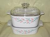 Best Price Corning Ware ROSEMARIE Pattern 4 Piece Casserole Set - 1 L w/ Plastic Lid & 1 1/2 L w/ Glass Lid with Corning Ware Pyrex USA